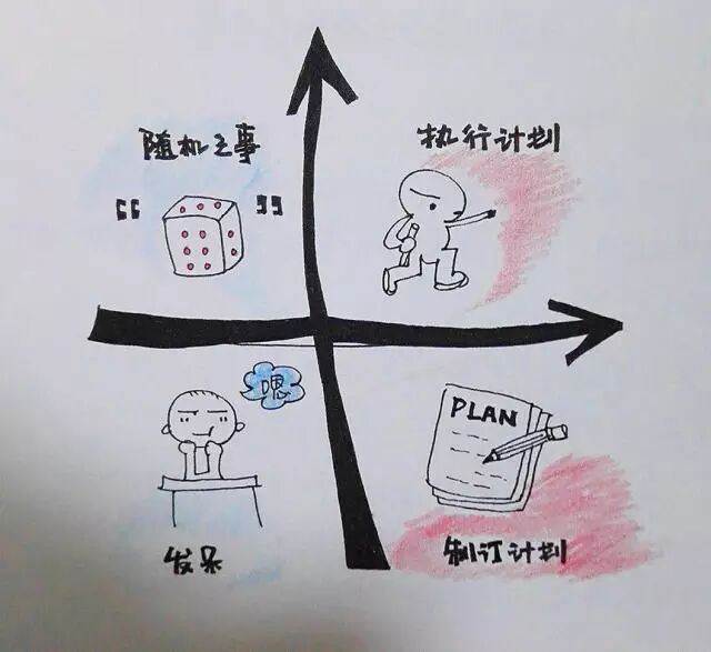 时间“四象限”法是美国的管理学家科维提出的一个时间管理的理论,把工作按照重要和紧急两个不同的程度进行了划分,基本上可以分为四个“象限”: