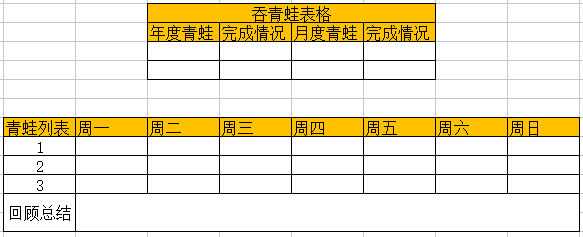 此外,每天工作工作记录表可以融合在计划清单里,在最右侧加上执行情况就可以。进阶版的还可以在计划清单最下面加上自己的三只青蛙,三个图表融为一体,绝对的豪华大餐。