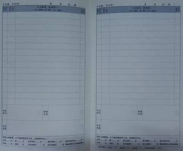 可以给每一天一个清晰的规划,知道每天的任务都有什么,不至于慌张、忙碌、错乱、迷茫。每日的反省也给了自己一个总结的机会,让自己清楚每天的不足在哪里,对自己的短板有了充分的了解,查漏补缺,才是我们真正实现蜕变的开始。