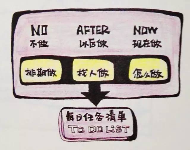 从碎片清单里面选出当天必须做的事情以及紧急的事情放进计划清单里,那些一般的事情,对自己帮助不大但是耗费时间的事情交给他人去处理,或者延期甚至直接放弃都可以。