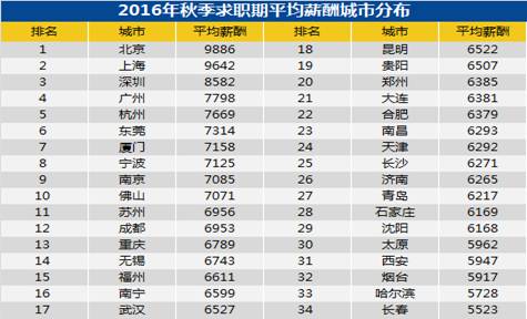 北上深广杭赚最多,北京以税前9886元领跑全国