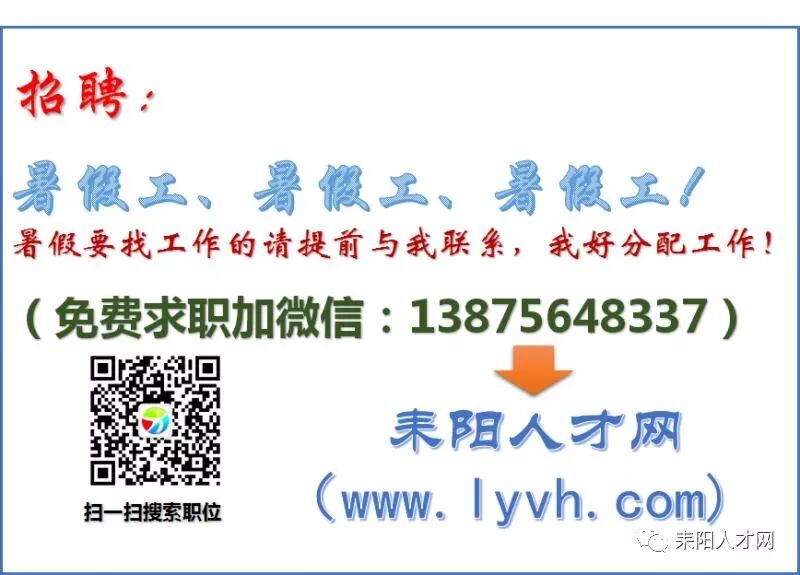 想挣点零花钱的,想积累工作经验的,快快与耒阳人才网(www.lyvh.com)联系,耒阳人才网在暑假期间推动暑假工就业行动,机会不等人,快快报名呀 !